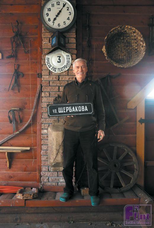 Завершив «банный комплекс», на участке вырыли колодец и оборудовали крытый двор. Он выполняет функции гаража, мастерской и одновременно… музея. Здесь хранятся старинные грабли, вилы, топоры. А над всем этим богатством актер повесил два старых московских указателя: «Улица Щербакова» и «Проезд Художественного театра» (её в 1977 году при ремонте легендарного здания МХАТа сохранил актёр Леонид Губанов, а через годы его вдова подарила реликвию Щербакову). Борис собрал большую коллекцию старинной русской утвари: утюги, прялки, амбарные ключи, сечки для капусты, цепы для льна, весы всевозможных конструкций, ткацкие станки, паяльные лампы на керосине, ножницы, коромысла, ухваты, кочерги, тёрки для стирки белья, граммофон… «Приезжая на гастроли в разные города, я первым делом спрашиваю: «Где тут у вас антикварный магазин?» — хотя во многих местах уже знаю все салоны и их директоров, — рассказывает Борис Васильевич. — Иногда мне говорят: «Да у нас там ничего красивого нет, одна старая рухлядь». А я радуюсь: «Это как раз то, что мне нужно!» Кстати, из-за всех этих покупок в аэропортах мне часто приходится доплачивать за лишний вес багажа. Причем сумма доплаты порой оказывается гораздо больше, чем цена самой вещи. Но это меня не останавливает. Ну не могу я отказаться ни от одного своего «сокровища»! И с наслаждением тащу, к примеру, из Благовещенска тяжеленные чугунные утюги, которые греются от помещённых внутрь раскалённых углей».
