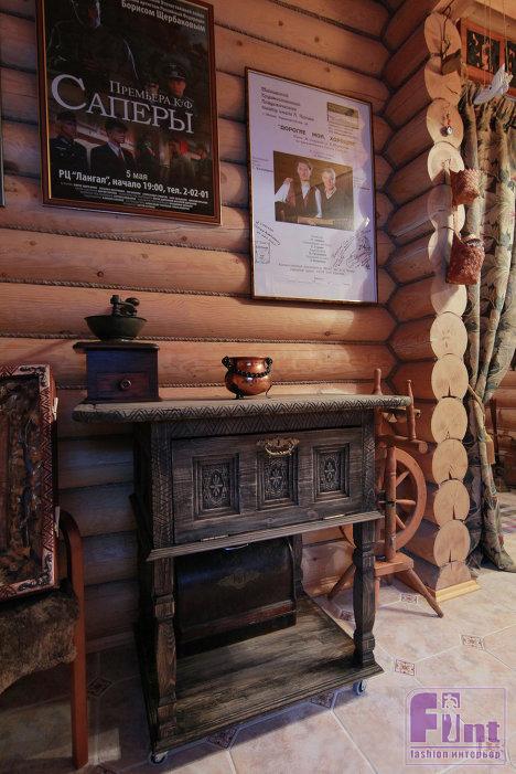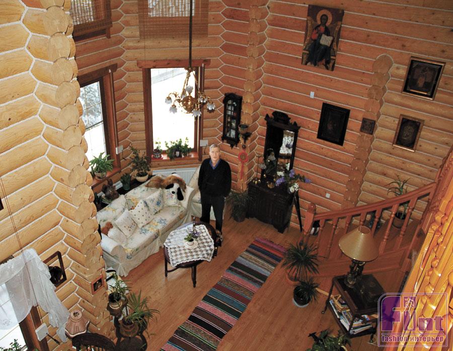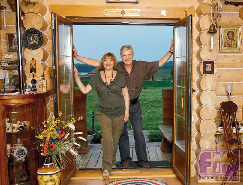Главной комнатой в доме должна была стать гостиная высотой в два этажа с мраморным камином и стеклянными дверями, откуда открывался отличный вид на озеро. Внутреннюю отделку помещений супруги решили не делать, оставив брёвна сруба на виду. С возведением огромной избы у актерской четы не было никаких проблем. Они до сих пор вспоминают, с какой любовью карельская бригада монтировала их дом. «Изба построена по старинным технологиям, а современная начинка, например проводка, спрятана внутри брёвен в специально высверленных желобах, — рассказывает Татьяна. — В доме нет ни единого гвоздя, а чтобы строение при усадке не перекосилось, между бревнами кое-где вставлены винты-распорки. Ребята работали на совесть, их не надо было подгонять (не случайно их приглашают строить шале во Франции). Мы было совсем расслабились, но «взбодрились», когда начали оборудовать кухню. Мебельщики нас «мурыжили» целый год, пока не доставили все фасады и ручки. А в результате посудомойка проработала ровно один день (мы ею так и не пользуемся), плита барахлит регулярно. Теперь советую новоселам: покупайте встроенную аппаратуру отдельно от кухни, в крупных магазинах бытовой техники».