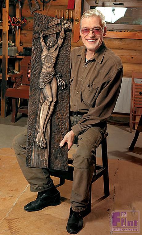 Почти все экспонаты домашнего музея — в рабочем состоянии. Актёр запросто починит любую сломанную вещь. Щербаков обожает поработать руками — строгать, пилить, резать. Это не только любимое занятие, но и лучшее средство от стрессов. Даже во время фотосессии Борис Васильевич не терял времени даром и в перерывах успел смастерить ящичек для документов. Да что там ящичек! Щербаков вырезает из дерева оклады для икон, картины на религиозные темы («Святая Троица», «Тайная вечеря», «Святые Борис и Глеб», «Снятие с креста»). «Работа эта кропотливая, да и сложно мне находить свободное время. Поэтому оклад я могу делать месяцами, а над одним образом Божией Матери трудился пять лет… Почти все деревянные картины я дарю друзьям. А вот мебель делаю «для дома, для семьи», — говорит актёр. — Вот задумал оборудовать беседку, где мы 1 января традиционно отмечаем утро нового года — на отрезвляющем холоде, в тулупах и валенках. Захотел поставить там стол и стулья. Заехал в магазин, цены — просто убийственные. Тысячи долларов! И я решил сам смастерить мебель. Благо на даче у меня целая мастерская с отличными инструментами, деревообрабатывающим станком… Вот раньше приходилось работать прямо в квартире, на балконе с видом на Кремль. Кстати, иногда вещь рождается буквально из бросового материала. Однажды подобрал на улице выброшенные бронзовые рожки от старинного бра. Прикрепил к ним деревянное основание, и новый светильник готов!»