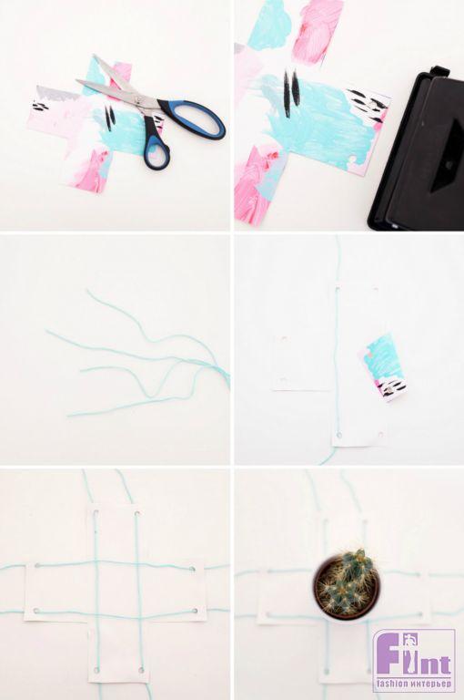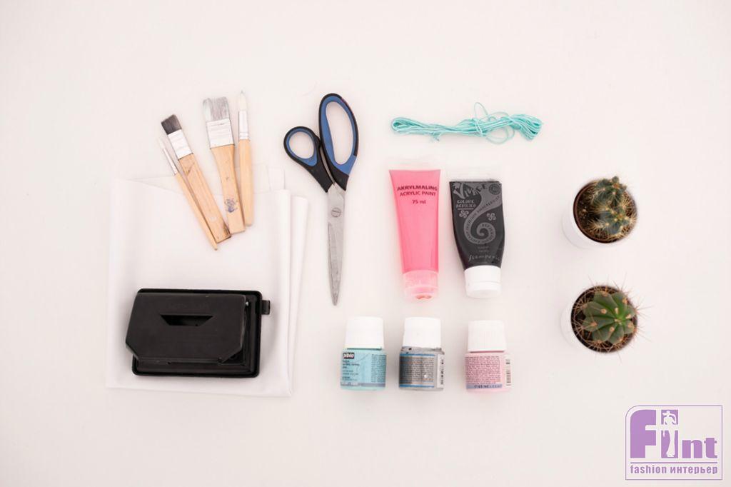 Для изготовления кашпо нам потребуется: маленькие кактусы или суккуленты, не прихотливые к поливу; обрезки кожи белого цвета; канцелярский дырокол; ножницы; пряжа ярких оттенков; акриловые краски пастельных тонов; различные кисти.