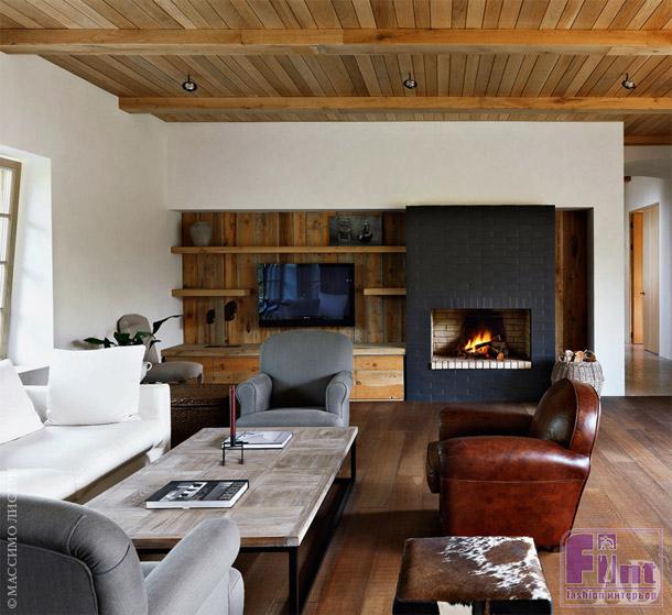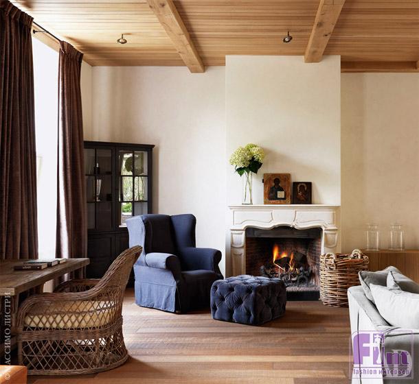 Кажется, что всё просто и не приукрашено, как аутентичный фольклорный мотив, но это затратная простота с изысканностью выделки даже в не самых броских по виду деталях. Стеллаж во второй гостиной-библиотеке сделан из бывалой, старинной ­древесины, дверные и оконные ручки сделаны французскими ремесленниками, которые изготавливают подобные вещи по прадедовским лекалам, а камин в духе непринуждённого рустикального барокко так мастерски вытесан и так деликатно состарен, что современное изделие в нём опознать непросто.