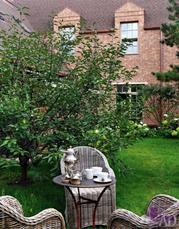 В результате получилось, что дом как бы рассказывает историю нескольких поколений. Перпендикулярно к основному объему с нарядными кирпичными фасадами пристроен еще один – с деревянной облицовкой: то есть здание на самом деле, конечно, одно, на одном фундаменте стоящее, но выглядит именно как пристроенный к зажиточному деревенскому дому большой амбар. Который с течением времени чуть перестроили и приспособили для жилья – так и в самом деле бывает сплошь и рядом. С ­улицы эта квазипристройка не заметна, виден только строгий и элегантный парадный фасад с разбитым перед ним газоном. А вот за домом – менее формальный сад с яблонями и теплицами, уютный уже не столько на фламандский, сколько на вполне подмосковнодачный манер. Только, в отличие от обычных дач, где хозяевам часто приходится выбирать – или светлый дом, или тенистый сад, в этом доме дневного света всегда в достатке.