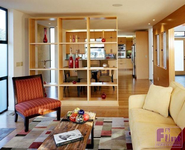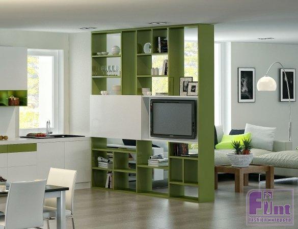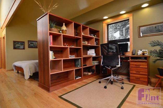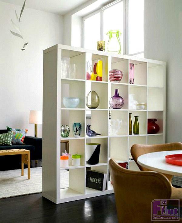 Таким образом, разделение пространства на зоны с помощью перегородки - очень разумное решение для жилых помещений, особенно небольшого формата. Удачно подобранный стеллаж поможет грамотно зонировать кухню и гостиную, игровую и рабочую зоны в детской, спальное место и общую комнату, спальню и рабочее место, и многое другое.
