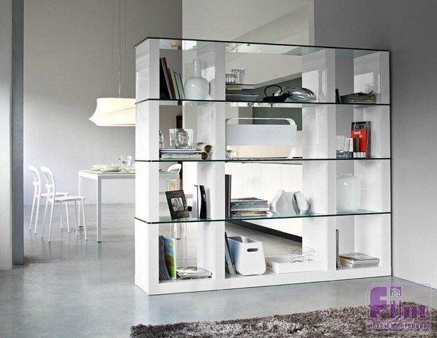 Стеллаж-перегородка – стильная и современная конструкция, идеально подходящая для малогабаритных квартир или небольших комнат, в которых проживает больше одного человека. Главная задача стеллажа-перегородки – зонировать пространство, разделяя функциональные зоны в помещении и выделяя для каждого из обитателей квартиры свой личный уголок.