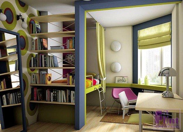 В единственной комнате малогабаритной квартиры, где живет семья с ребенком, таким образом можно отгородить маленький детский уголок. Перегородка удачно разделит комнату на две спальни: взрослую и детскую, и даже может остаться место для гостиной зоны. У ребенка появится свое пространство, где он будет хозяином, а взрослые смогут наблюдать за ним с «родительской» половины, не заходя на его территорию. В этом случае идеально подойдёт стеллаж, дверцы шкафов которого открываются частично в одну, частично – в другую сторону. Так родительские и детские вещи тоже будут разделены.