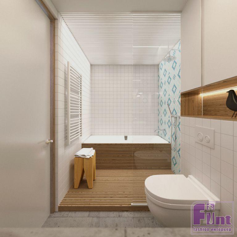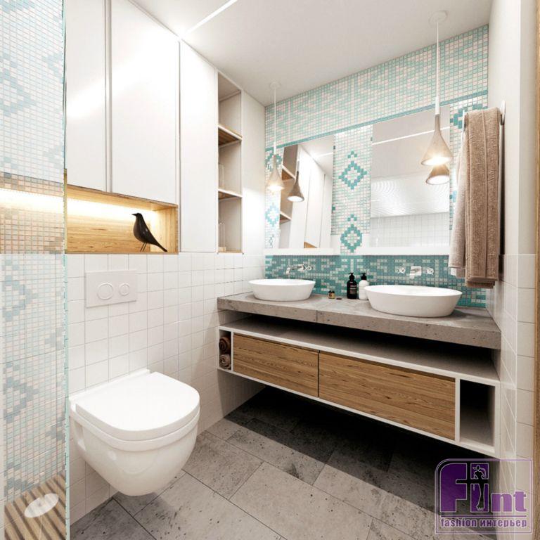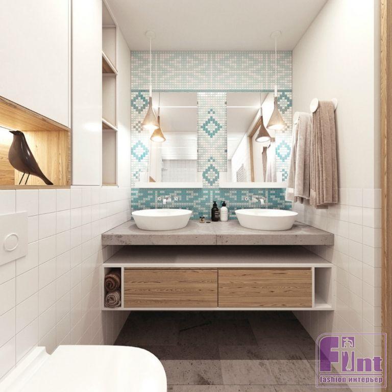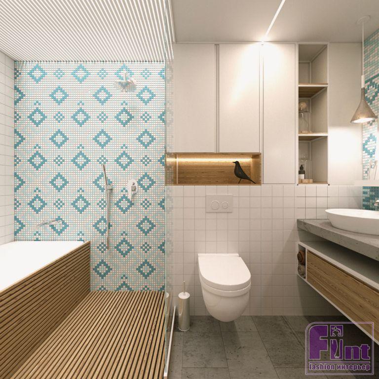 В качестве акцентных поверхностей в ванной использовали мозаику с этническим узором.