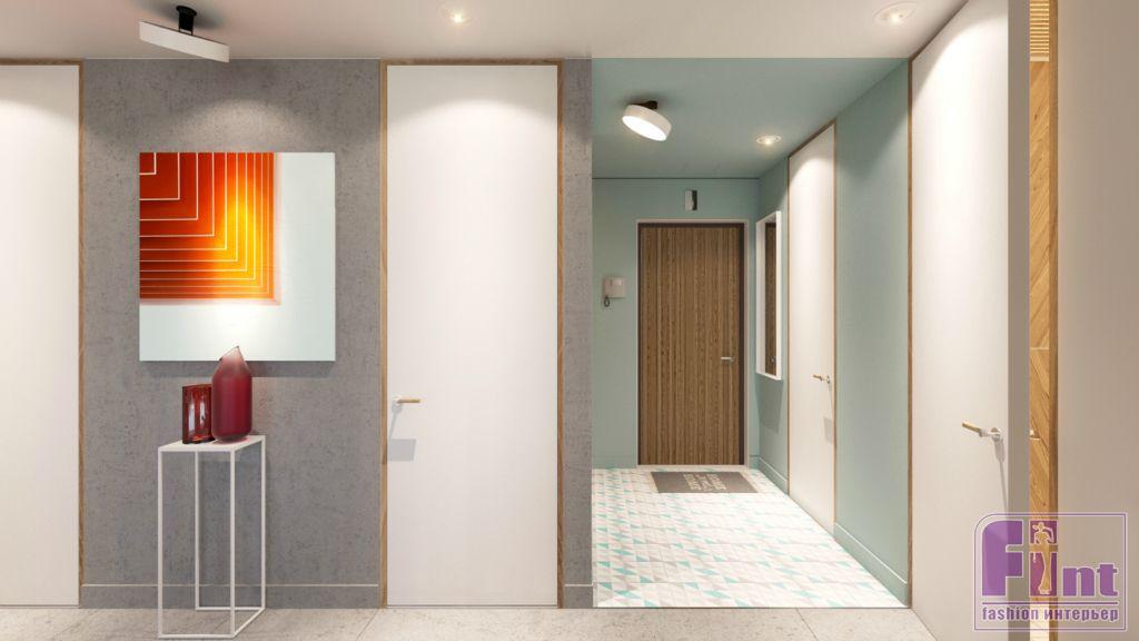 Отделочные материалы подобраны в соответствии с эстетическими предпочтениями заказчиков, удобством эксплуатации и в созвучии с общей концепцией проекта. Основу фона квартиры составили три материала: дуб, микроцемент с текстурой бетона и выкрашенные в белый цвет панели МДФ. На этот фон дизайнеры наложили контрастные бирюзовые оттенки в кухне (фартук) и прихожей (стены и потолок). В качестве основного напольного покрытия авторы проекта выбрали инженерную доску с финишным слоем из дуба.