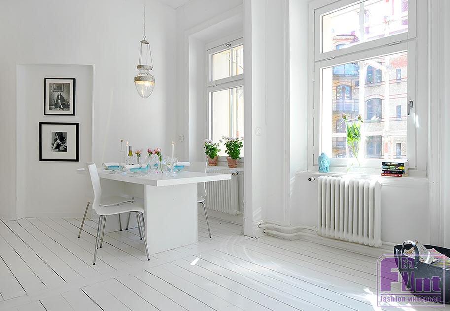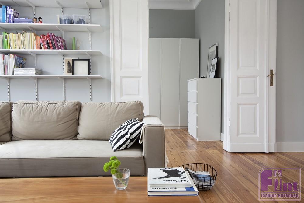 Чем проще – тем лучше: например, открытые кухонные полки вместо привычных закрытых шкафов будут выглядеть необычно, и при этом сэкономят средства. Прежде чем возводить стены, присмотритесь к обычным стеллажам, которые также прекрасно выполнят функцию зонирования. Вместо того чтобы нанимать электриков и делать новую проводку для дополнительного освещения тёмной комнаты, просто покрасьте стены в белый или аналогичный светлый тон – помещение станет заметно светлее!