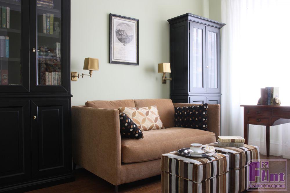 Хозяевам от мам и бабушек достались книги, сервизы, ленинградский фарфор, чешское стекло. Эти вещи, напоминающие об истории семьи, перенесли на новое место. Предметы мебели подбирали таким образом, чтобы они производили впечатление уже поживших. Так, итальянский стол и горка для посуды выглядят как старая московская мебель в духе сталинского ампира.