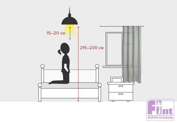 2. Если вы решили разместить над кроватью ребёнка потолочный светильник, проследите, чтобы он не нависал слишком низко и давал мягкий, рассеянный свет. Оптимальная высота до светильника: 215–230 см от пола.