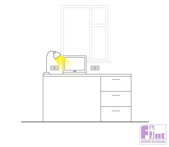 3. Настольную лампу на рабочем столе ребёнка располагайте слева (для левшей – справа) и следите, чтобы на поверхности не было резких теней. Лучше всего, сидя за рабочим столом, использовать одновременно общий и локальный свет: так зрение ребёнка не будет чрезмерно напрягаться.
