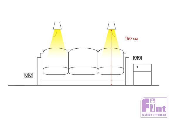 5. Бра в диванной зоне детской комнаты располагайте на высоте 150 см от пола. Так вы получите мягкий рассеянный свет.