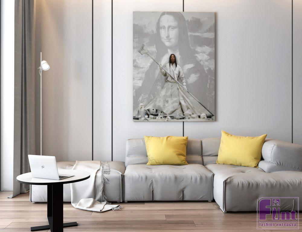 В отделке - много натуральных материалов. В санузле использован мрамор, обработанный специальным образом. Необходимый «воздух» добавила обстановке и светлая цветовая гамма, выбранная для оформления. Тепло и уют привнесли с помощью природных натуральных текстур. Яркие акценты - подушки на диване и современная живопись на стене в гостиной дополнили общий стильный облик квартиры.