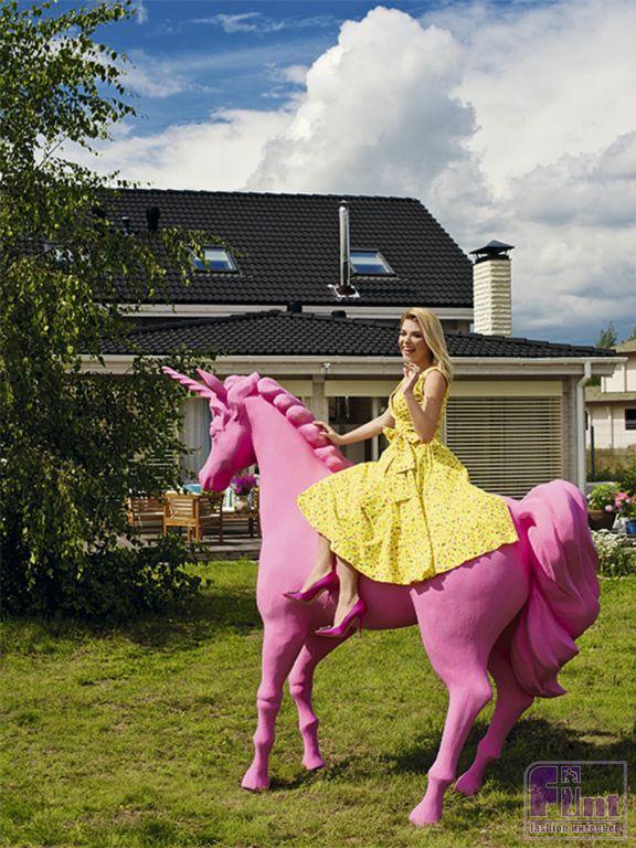 В детстве Олимпиада свято верила, что где-то в Подмосковье водятся единороги - сказочные существа, исполняющие мечты. И была очень разочарована, узнав, что это не так. Выросла и исправила несправедливость! Теперь рядом с её домом стоит самый настоящий розовый единорог! Розовый - потому что фантастический и отлично смотрится как на зеленой траве летом, так и на белом снегу зимой. Липа придумала его и заказала, когда дом был только в проекте, и телеведущая лишь мечтала, как посадит яблоневый сад, какие и куда поставит качели. Но Олимпиаде так хотелось, чтобы что-то радовало глаз прямо сейчас. Только вот куда бы она ни обращалась, никто не хотел браться за садовую скульптуру «розовый единорог». «У вас же скульптура лошади есть, что вам стоит рог прикрепить?» - пыталась уговорить мастеров Липа. «Фигура нестандартная, вдруг вы потом откажетесь, куда мы эту кобылу денем?» — отказывали телеведущей снова и снова. В итоге мечту Тетерич осуществили славные люди, которые делают декорации и бутафорию для Большого театра.