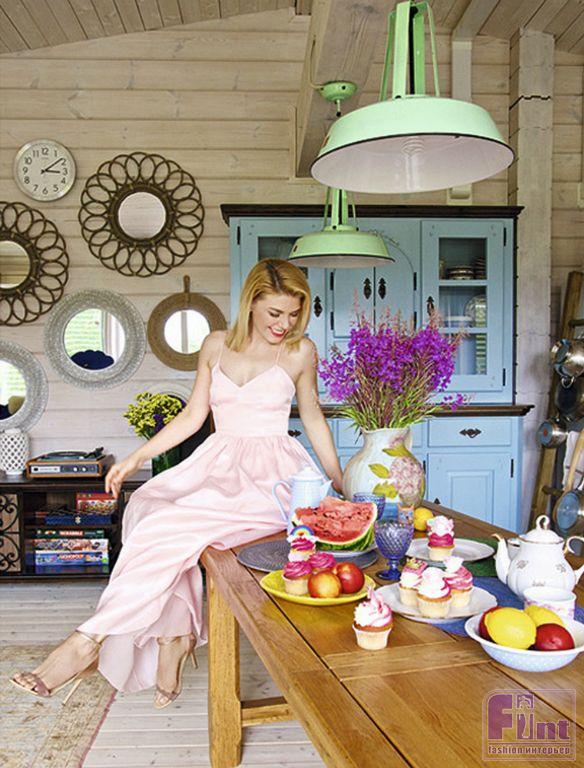 Гармонично расставить всё по местам Липе помогла дизайнер Марина Брагинская. Однажды она радикально переделала московскую квартиру телеведущей: сменила пастельные тона на яркие краски, сделала стены розовыми и зелеными. Результат Тетерич очень понравился. Поэтому и в загородном доме она не ограничивала себя в выборе цветовой гаммы, и, кажется, здесь можно найти все цвета радуги!