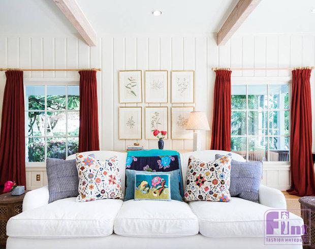 Как ни странно, слишком высокие потолки – не так уж и хорошо, как принято считать: они не всегда меняют восприятие жилого пространства в лучшую сторону. Если вы чувствуете, что интерьеру не хватает уюта, попробуйте зрительно опустить потолок. Это можно сделать, выкрасив его в более тёмный оттенок, используя декоративные балки или располагая карнизы с гардинами значительно ниже уровня потолка.