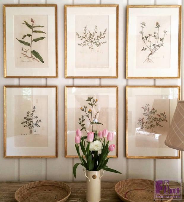 Нет ничего более неуютного, чем растиражированные картины и постеры на стенах. Найдите изюминку, которая преобразит именно ваш интерьер. Для кантри-стилистики подойдут засушенные растения под стёклами в рамах, рисунки и наброски на цветочную тему, деревенские пейзажи, декоративные тарелки. В более богемную обстановку отлично впишутся камерунские шляпы, карнавальные маски. Индивидуальности интерьеру добавят фотоколлажи, модный леттеринг или популярные «мудборды» (англ. Moodboard – «доска настроения»).