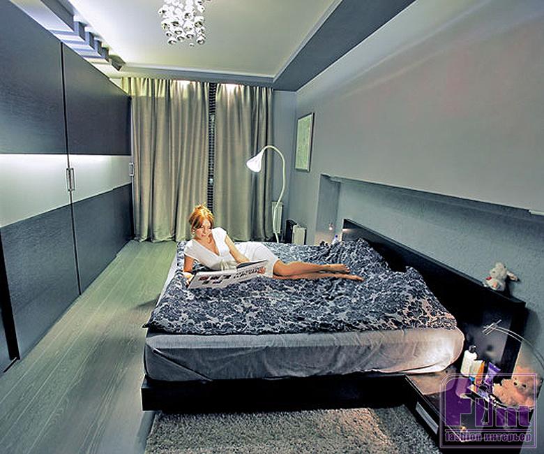Хозяйская спальня оформлена в тёмных спокойных тонах. Здесь нет зеркала, а телевизор спрятан в шкафу-купе: если закрыть дверцу, его не видно. В спальне всё сделано для того, чтобы можно было максимально расслабиться и отдохнуть после концертов. Яркий акцент спальни - портрет Подольской, выполненный в стиле знаменитого Энди Уорхола. На нем она и одна, и не одна – в разных образах. Совсем как в жизни!